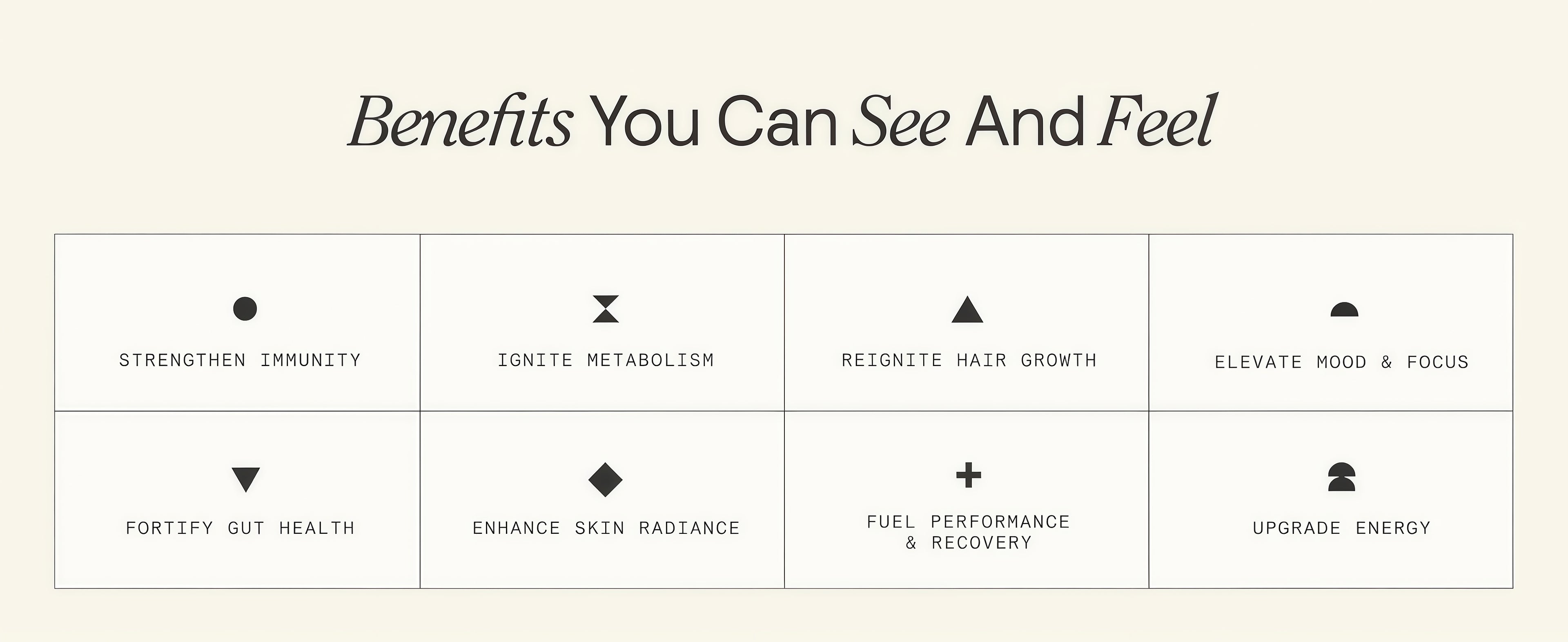 ARMRA strengthens immunity, supports gut health, enhances skin and hair, boosts energy, sharpens focus, and speeds recovery — all from the power of over 400 bioactive nutrients.