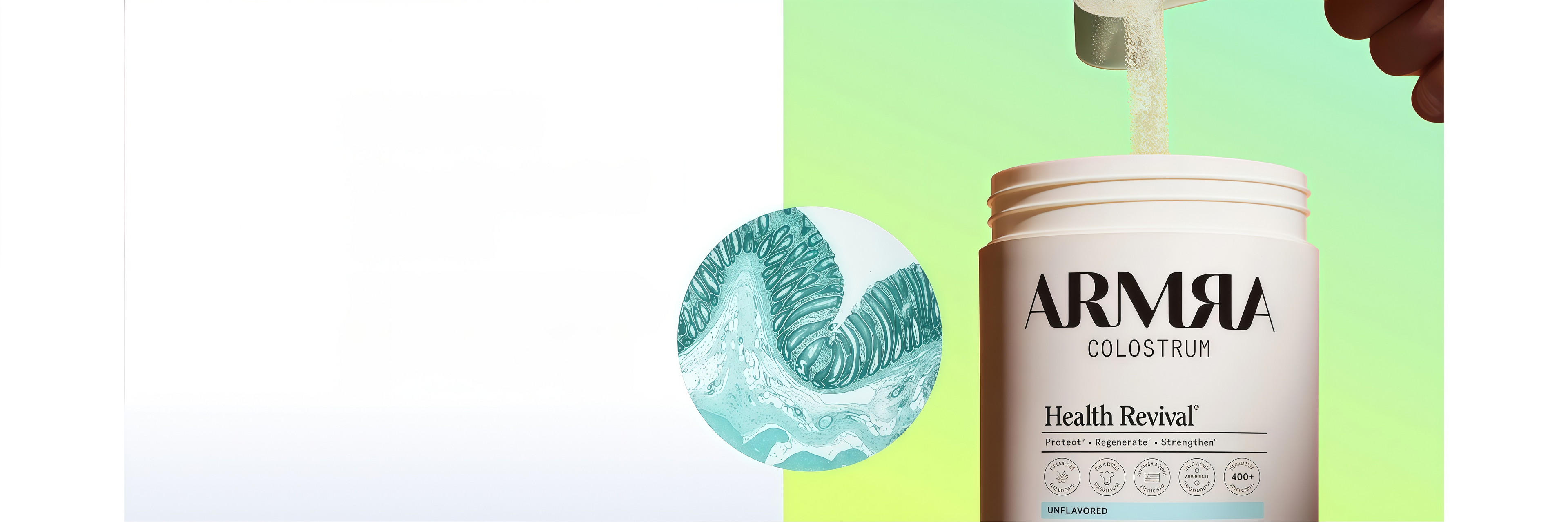 ARMRA Colostrum™ helps rebuild and fortify these defenses. By sealing and strengthening your gut lining, it acts as your body’s natural shield against toxins, pollutants, and modern exposures—restoring balance, resilience, and long-lasting vitality from the inside out.